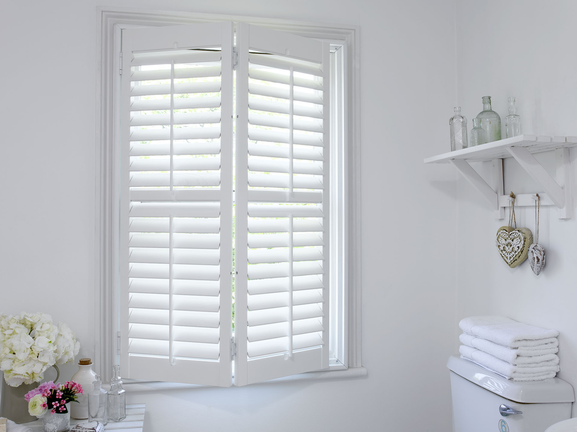 These shutters have the full window coverage of the full height option but with the maximum light benefits of the cafe style. The top set of doors will open allowing in extra light, but your privacy is maintained as the bottom doors can remain closed.